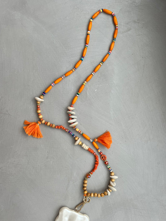 BOTB phone charms can be worn as a necklace, over the shoulder or cross body to let you go hands-free. Simply remove your phone from the phone case and place the ultra-thin tether tab provided inside the bottom of your phone case with the thinnest part poking out through the charging hole. Clip your phone charm through the hole. Don’t worry this doesn’t block the charging port, so you can easily charge your phone while using the product.
