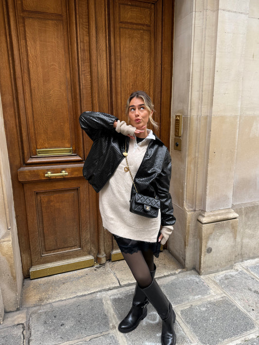 ALLEGRA WOVEN LUXE BOMBER JACKET IN NOIR