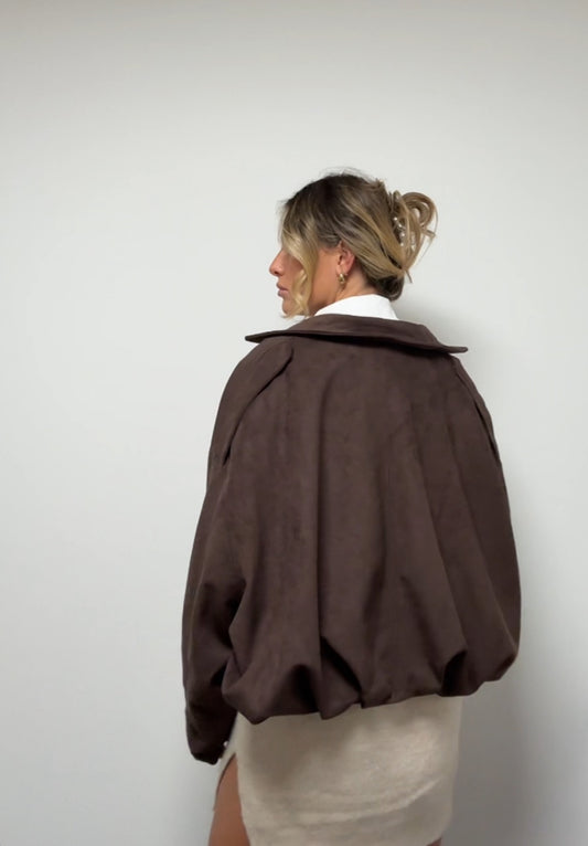 NOEL LUXURY VEGAN MONGOLIAN CROPPED JACKET IN CACAO
