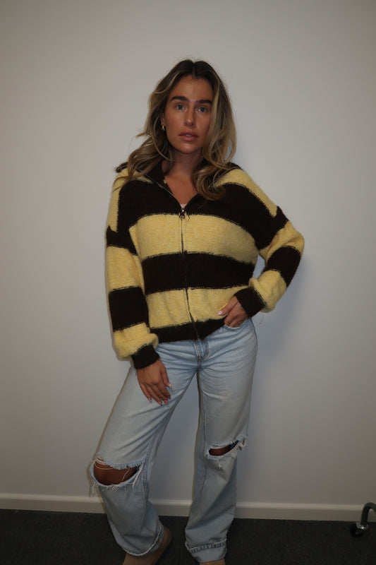 BROWN AND BUTTER STRIPE HONEYBEE KNIT