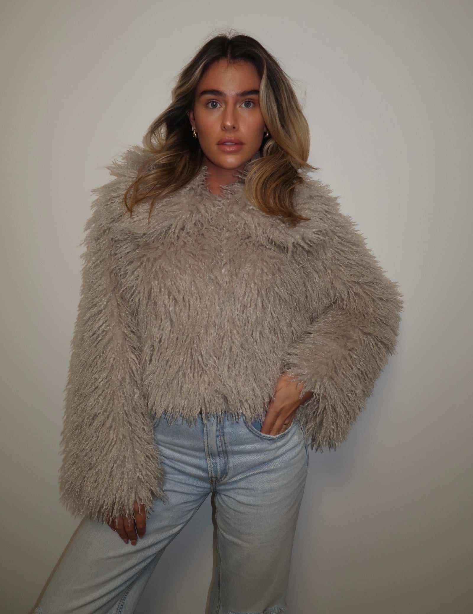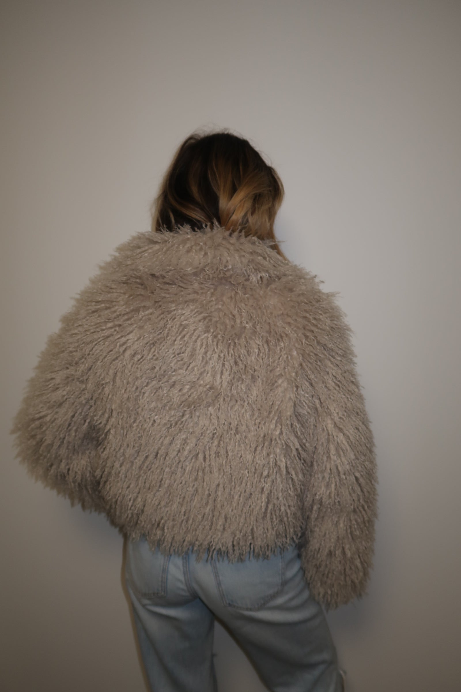 NOEL LUXURY VEGAN MONGOLIAN CROPPED JACKET IN OYSTER